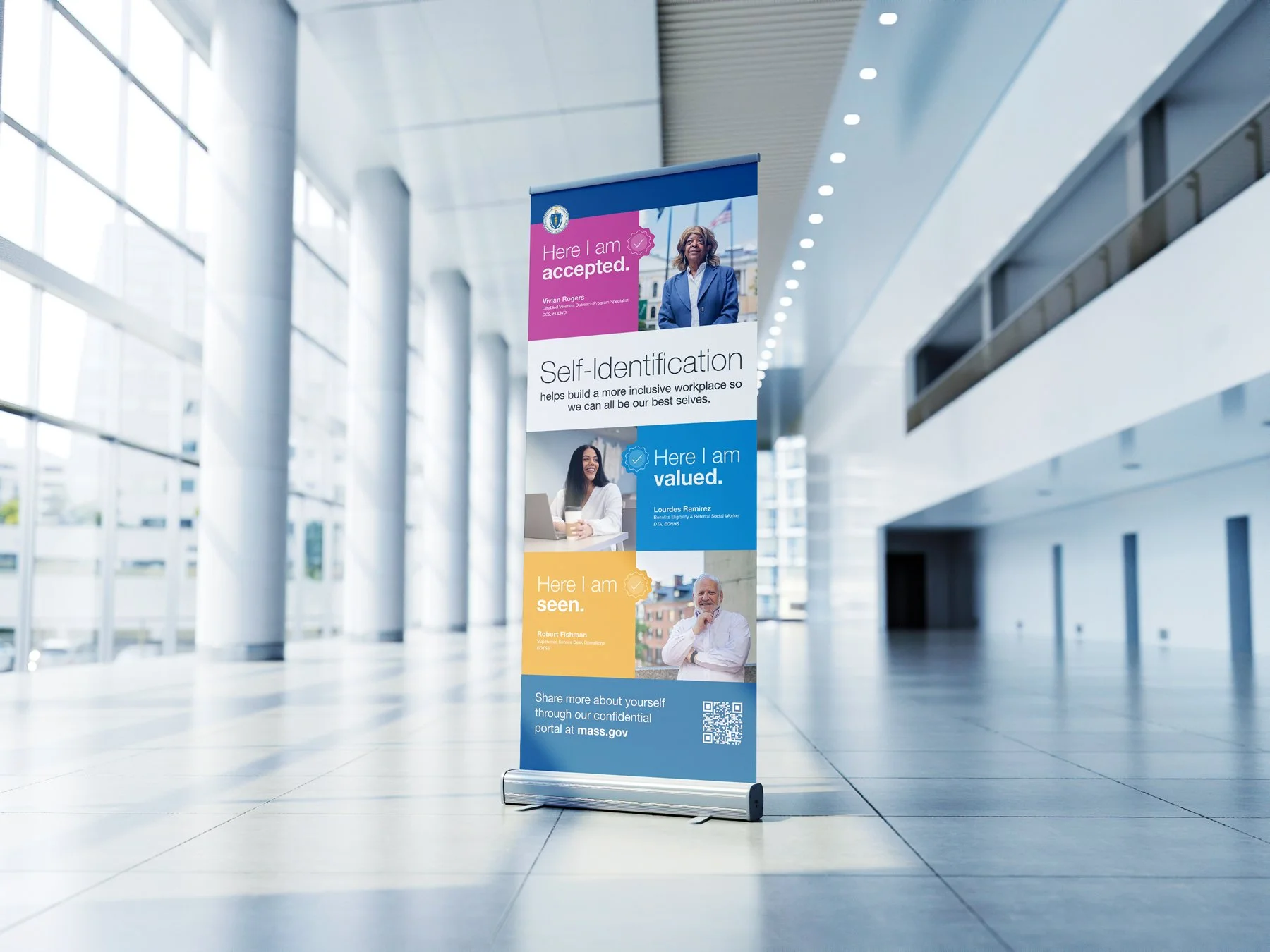 Campaign development for the Massachusetts Commonwealth self-identification initiative, introduced by the Human Resources Division, helping to create a more inclusive workplace for all.